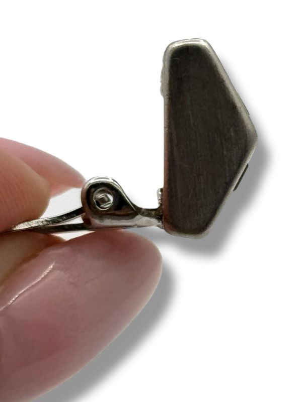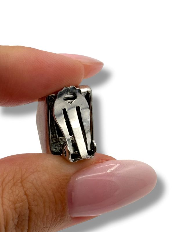La superficie opaca del metallo crea un raffinato contrasto con la trasparenza luminosa dei cristalli, enfatizzandone i riflessi e dando vita a un effetto ottico essenziale ma d’impatto. La clip posteriore, discreta e comoda, garantisce una presa sicura sul lobo senza provocare fastidi, permettendo un utilizzo prolungato anche per chi non ha i fori.