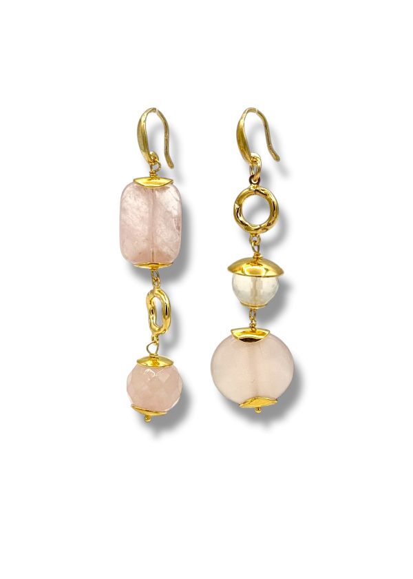 L’argento 925 dorato assicura solidità e perizia artigianale, mentre il quarzo rosa naturale è stato raffinato con attenzione e selezionato per le sue nuance luminose. La lavorazione manuale e il design asimmetrico rendono questi orecchini pezzi unici, senza repliche, un vero gioiello da collezione in stile contemporaneo.