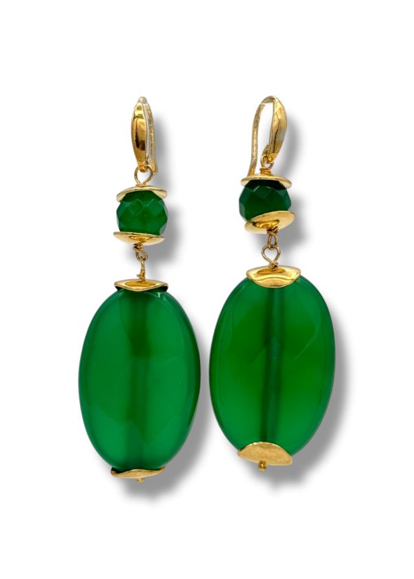 Orecchini pendenti in pietra naturale di agata verde e argento dorato. Design raffinato e leggero, perfetto per serate eleganti o outfit quotidiani. Fatti a mano in Italia. By Ave Caprice.